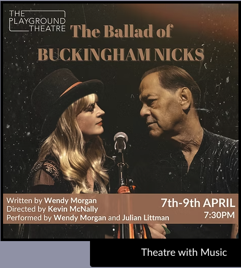 “The Ballad of Buckingham Nicks by Wendy Morgan at The Tabard takes us on roller coaster ride of sex, drugs and rock ‘n roll that was the turbulent lives of Lindsey Buckingham and Stevie Nicks. Wendy Morgan beautifully evokes the otherworldliness of Nicks and Julian Littmans musicianship is supreme as Buckingham; both deftly directed by Kevin McNally.”